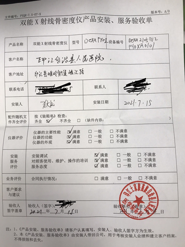印江自治縣人民醫(yī)院采購(gòu)品源雙能x線(xiàn)骨密度檢測(cè)儀,安裝培訓(xùn)完畢并投入使用