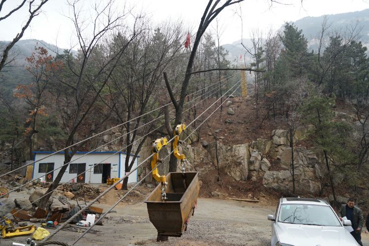 貨索搭設(shè),長(zhǎng)度1200余米垂直提升600余米,中間設(shè)四個(gè)中繼站,難度讓負(fù)責(zé)人白了頭