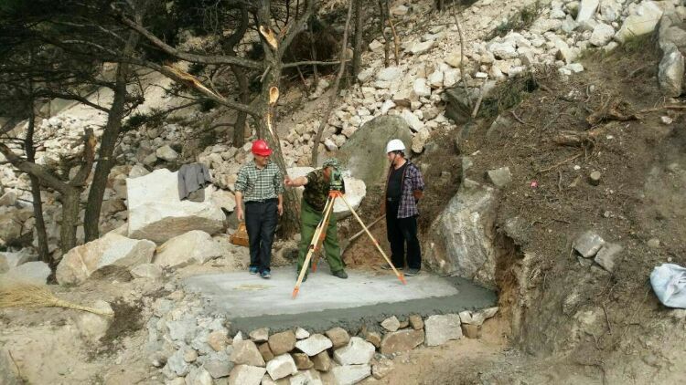 施工用水是在山腳下接的山泉水,做蓄水池,再用貨索運(yùn)到山頂。