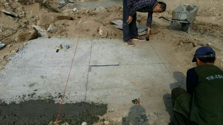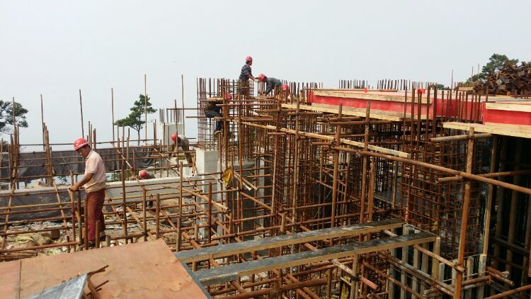 混凝土基礎(chǔ)澆鑄,因山地高差大,南側(cè)及東側(cè)柱子高度近20米,一直澆鑄到懸崖下面
