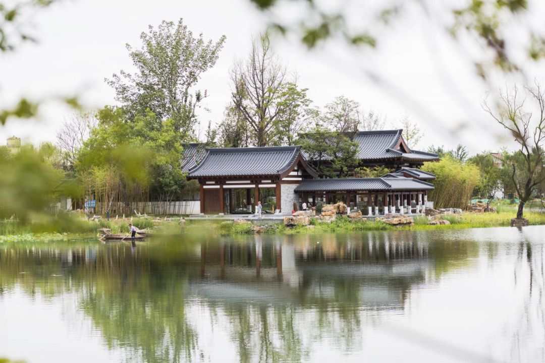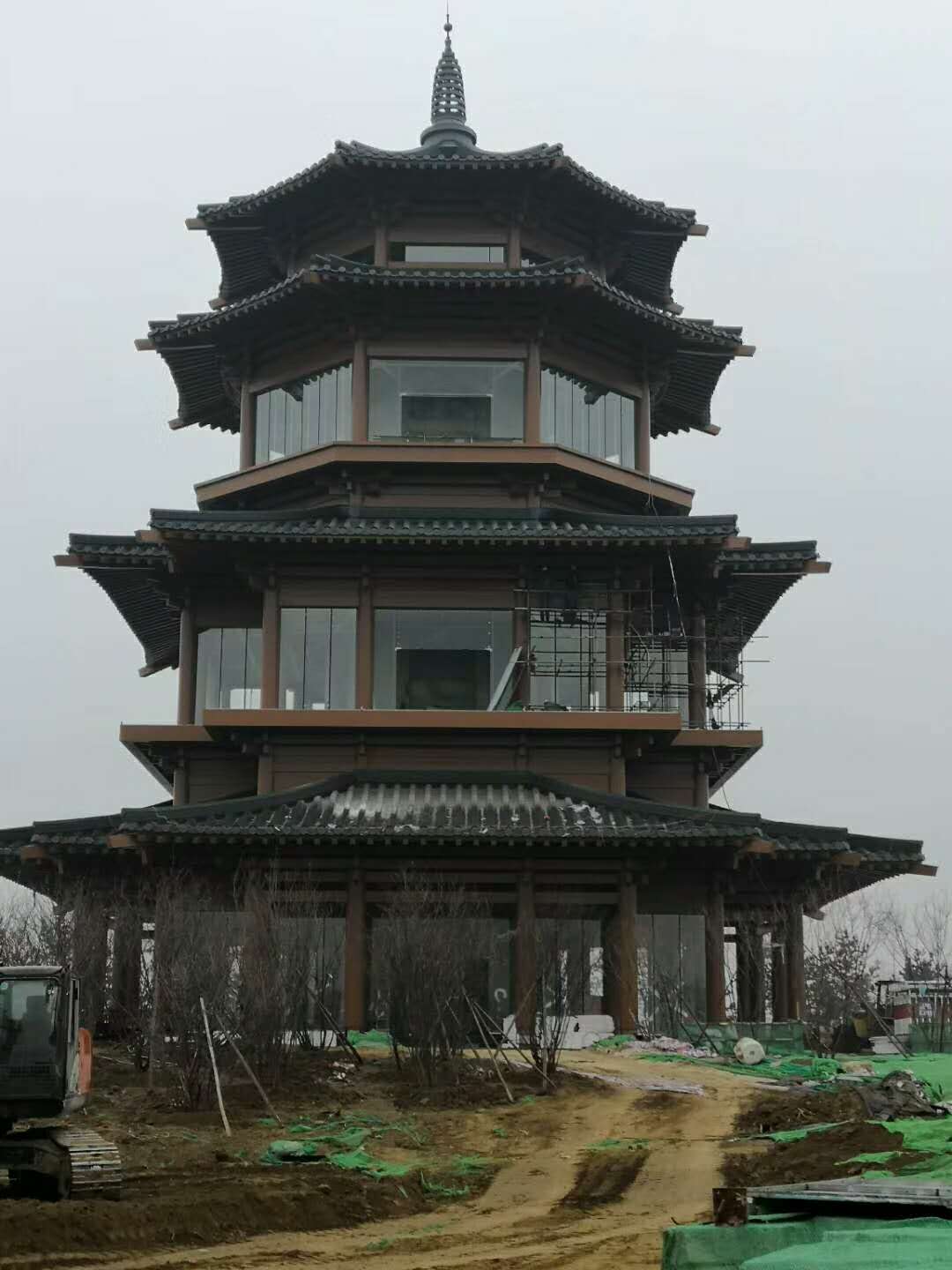 西安市渼陂湖公園紫煙閣鋁瓦屋面完美收官.