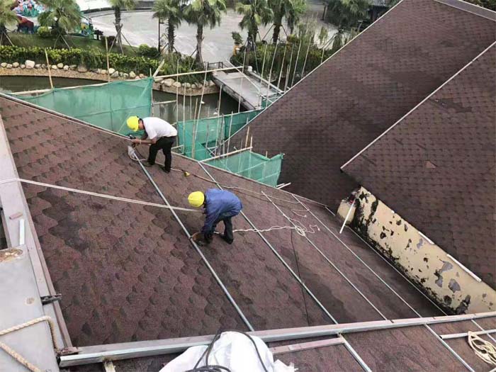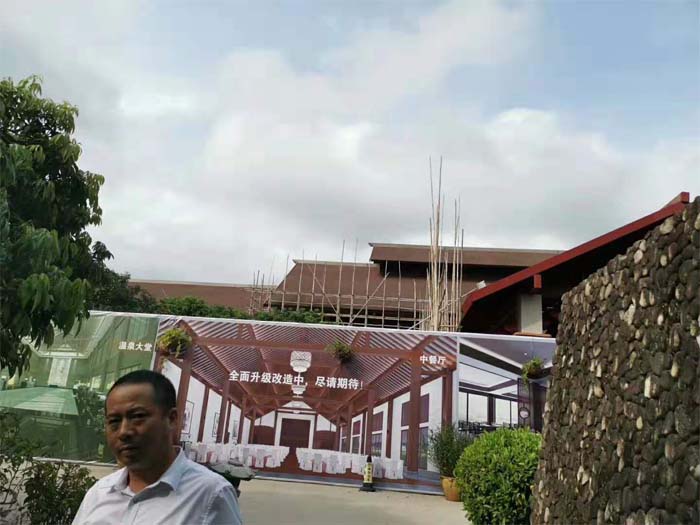 廣東省茂名御水古溫泉屋面鋁瓦改造工程開(kāi)始施工,屋面系統(tǒng)全面升級(jí)新型屋面鋁瓦,新中式鋁瓦建筑改造,鋁合金仿古瓦面積總共4500平方!感謝廣東茂名御水古溫泉領(lǐng)導(dǎo)對(duì)東申鋁瓦產(chǎn)品的認(rèn)可和信賴!