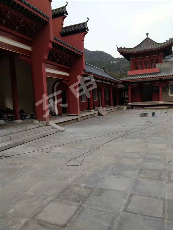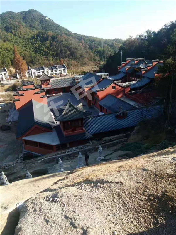 2019年12月2日湖北黃梅縣老祖寺掛笠庵整體屋面全部采用東申仿古金屬瓦裝飾屋面;3#分體瓦,面積約1061.7平方米;整體外觀質(zhì)感亮麗,彰顯高端氣質(zhì);