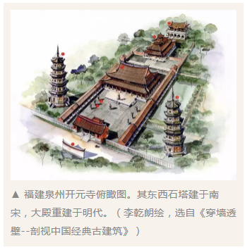 其東西石塔建于南宋,大殿重建于明代。(李乾朗繪,選自《穿墻透壁--剖視中國經(jīng)典古建筑》)