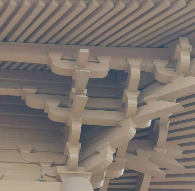 與遼同時的北宋,已開始著手對斗拱進行大規(guī)模的改造,或者可以說宋代是斗拱演變史上一個重要的轉(zhuǎn)變期。由于屋頂?shù)钠露仍龃螅⒅痈,斗拱的作用開始弱化,不僅比例變小,而且補間輔作增多。