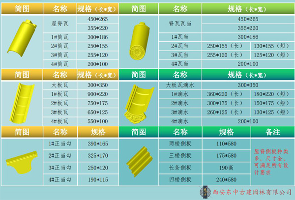 就目前而言規(guī)格這塊要考慮的多,目前瓦片它分為兩種,一種是分體瓦就是一條一條的這種瓦片它的規(guī)格有四個號,1號瓦,2號瓦,3號瓦,4號瓦這四種,1號瓦最大了,4號瓦最小,具體的規(guī)格細節(jié)如下圖:
