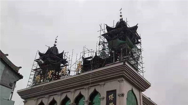甘肅臨夏橋窩清真寺屋面全部更換為東申鋁瓦,瓦型選用3號分體瓦,顏色,灰色,厚度為1.2mm,面積約300多平方,感謝清真寺主任,阿訇的信任和支持。