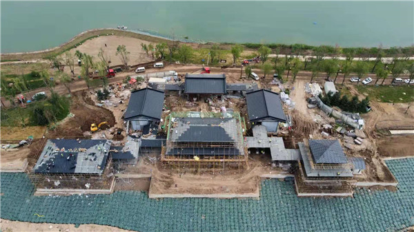西安昆明池七夕公園鋁瓦屋面景觀提升工程正在進(jìn)行,整體昆明池七夕公園工程正在提升修建,仿古風(fēng)格長(zhǎng)廊亭子屋面統(tǒng)一采用鋁合金仿古瓦,主要采用分體鋁合金瓦,厚度1.2mm;屋面修建正在施工;總體昆明池用瓦需求面積約8000平方;由東申瓦業(yè)供瓦.