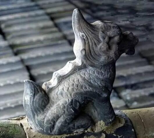 傳說此獸好吞,故在正脊兩端作張嘴吞脊?fàn),又稱“吞獸”。所謂的“吞脊獸”,便是有名的“龍之九子”中的“鴟吻”