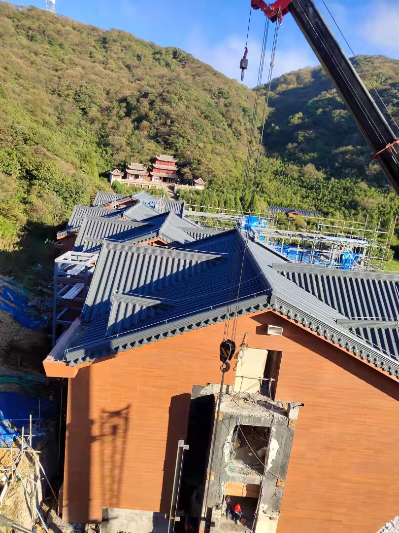8月28日重慶金佛山假日酒店屋面鋁瓦工程