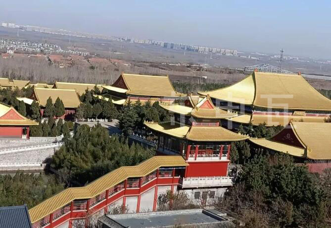 遠觀整體的效果更多的金光閃閃,富麗堂皇,顯得尤為高大尚,金色瓦使用于寺院更顯大氣蓬勃,比普通的灰色更氣質(zhì),現(xiàn)在狠多的仿古建筑屋面都使用金色瓦,加上led量化工程,打造特色旅游景區(qū)為標志建筑。