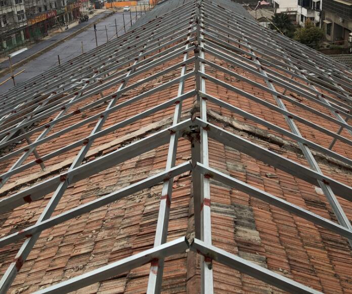 第一,在混凝土屋面(鋼結(jié)構(gòu)屋面)安裝瓦的底層龍骨;橫龍骨鋪設(shè)在最下面用來調(diào)平屋面,豎龍骨鋪設(shè)到橫龍骨上面用于掛瓦。