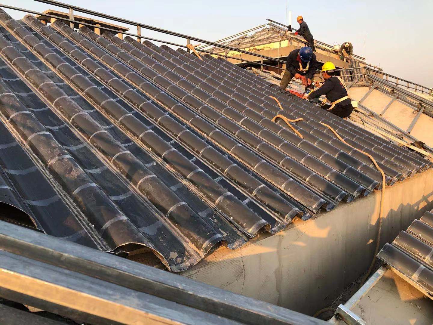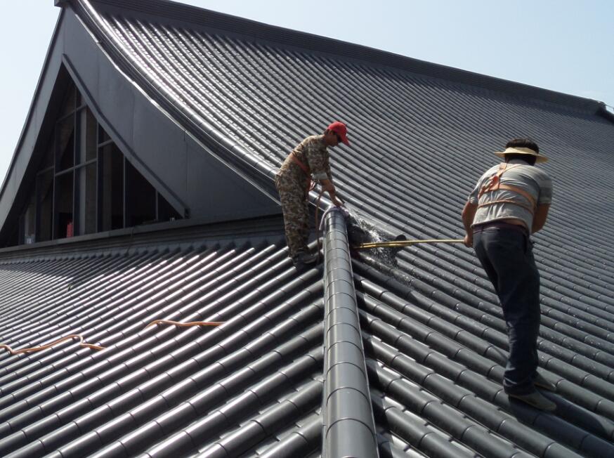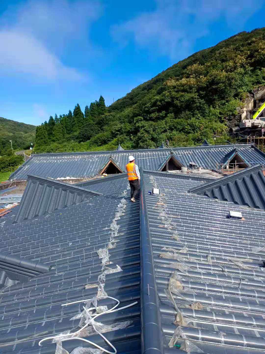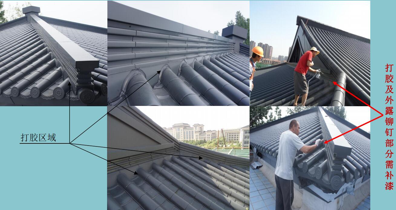 第三,安裝屋脊瓦和側(cè)板瓦,陰角瓦,陽角瓦;