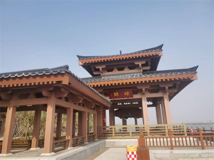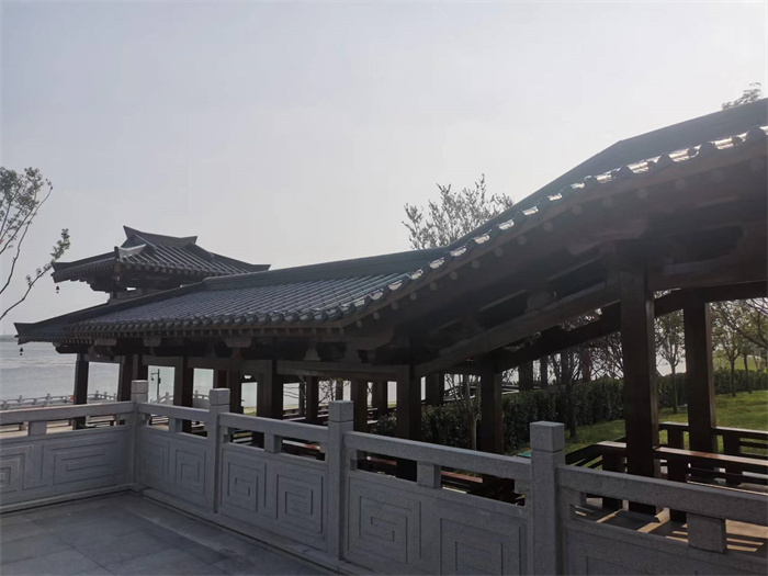 陜西昆明池閘房及廊亭工程完工,整體漂亮美觀,采用東申瓦業(yè)生產(chǎn)的古建金屬瓦,厚度:1.2mm,顏色,灰色;專業(yè)定制瓦當(dāng)?shù)嗡,新中式仿古風(fēng)格;感謝景觀提升工程(昆明池七夕公園)項目部的老總們對東申瓦業(yè)的信賴和關(guān)照。打造精美景觀水域仿古屋面工程,選用東申古建金屬瓦。