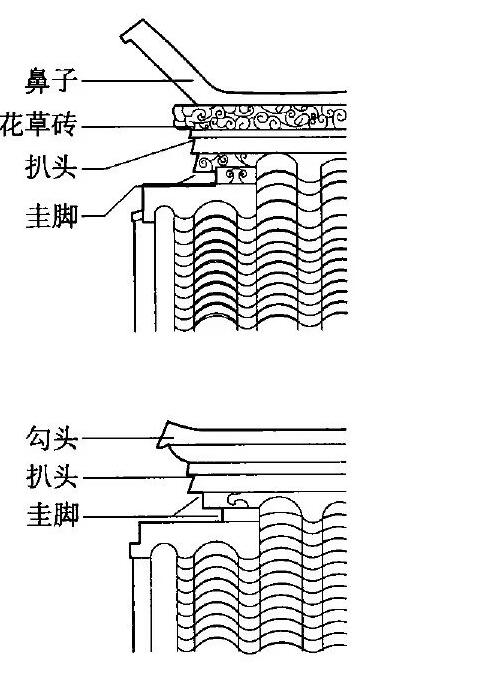 斜脊(垂脊,戧脊),垂獸(戧獸),小獸(走獸)