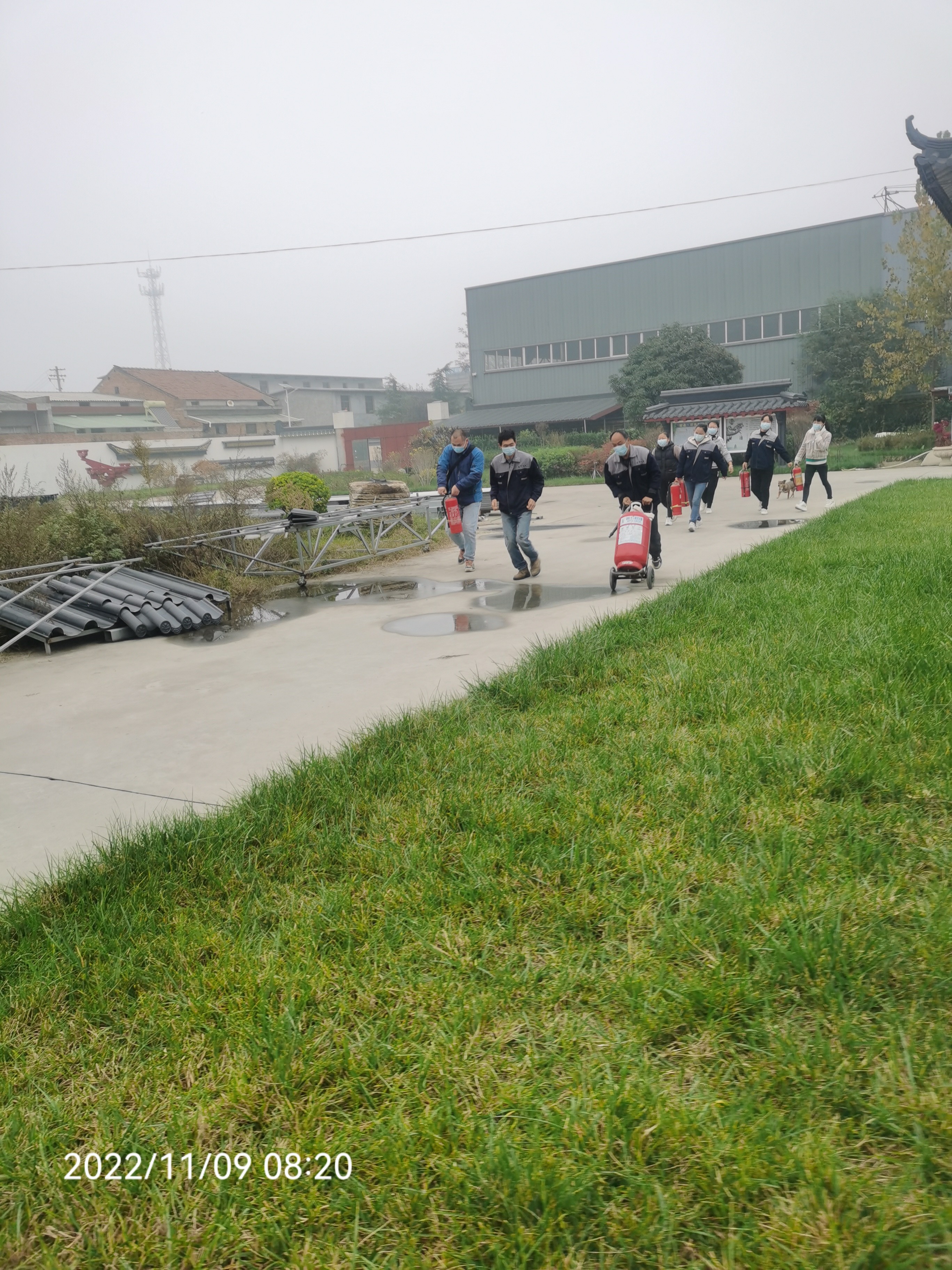 其次,大家搬運(yùn)消防器材進(jìn)廠區(qū)活動區(qū)域等候
