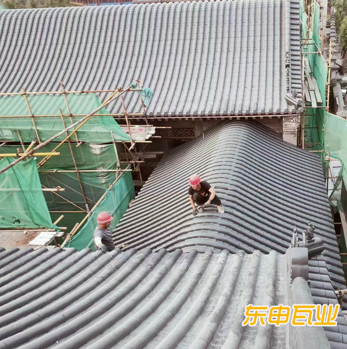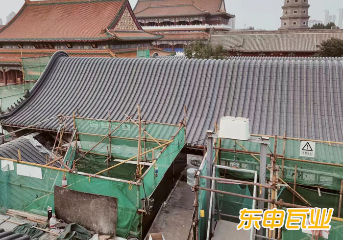 天津大悲院屋面仿古瓦鋁瓦施工完成歷時三個月,選用東申瓦業(yè)的3號分體鋁瓦,厚度1.2mm;顏色為灰色;風(fēng)格為明清風(fēng)格;整體屋面為卷棚屋面,用鋁瓦安裝外表面呈現(xiàn)滿滿的金屬質(zhì)感,工藝精致,施工精心;非常感謝大悲院領(lǐng)導(dǎo)對我公司的信任和支持;寺廟用瓦,就選東申鋁瓦。