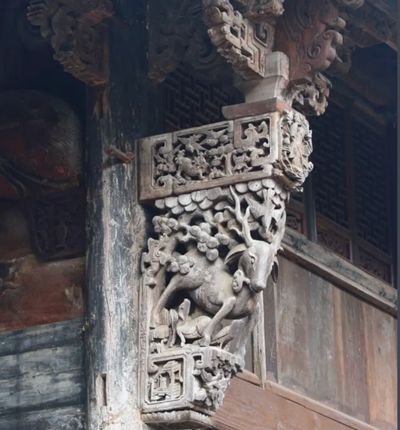其實除了安裝位置的不同(雀替一般是梁下的木雕構件,而牛腿基本上是檐下的木雕構件),還有流行地區(qū)和年代的不同:從名字你就能感覺出來,牛腿比較“笨重”,所以常與木雕結合。明清時期我國木雕達到了鼎盛時期,牛腿也是在這一時期流行起來的;另外,牛腿普遍存在于中國南方,特別是江浙地區(qū)和皖南一帶,北方幾乎很少見。