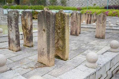 旗桿石在福建、廣東、江西客家地區(qū)比較常見,與華表有相似之處,但作用不同。古代科舉制的封建社會里,族中倘有人經(jīng)過科舉應(yīng)試獲得功名者,要在祠堂或圍屋門前豎立石旗桿。由于覓石不易,于是有人便代之,旗桿選用約大于33厘米大口徑的杉木,旗桿的下半部開鑿有兩個孔,與旗桿夾的孔相一致,豎立后,兩邊再用兩塊石柱鑲夾固定。