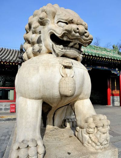 獅子,中國傳統(tǒng)文化瑞獸,在古建筑里極為常見。古人堅信其守門能辟邪。所以匠人在修建宮殿、陵墓、橋梁、府第及各類房屋建筑時,常常安放各式各樣的石獅子。古建筑大門外常左右成對擺放,依男左女右陰陽哲學(xué),左雄右雌,既顯莊重威嚴(yán),又寄美好祈愿,成古建筑關(guān)鍵文化符號。