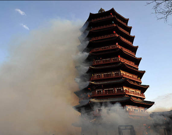 永定塔建設(shè)在園博園內(nèi)的鷹山之上,是遼代風格、八角九層的仿古木塔,塔身雖然只有69米高,但由于建在山上,故可遙望北京城。火災(zāi)現(xiàn)場。